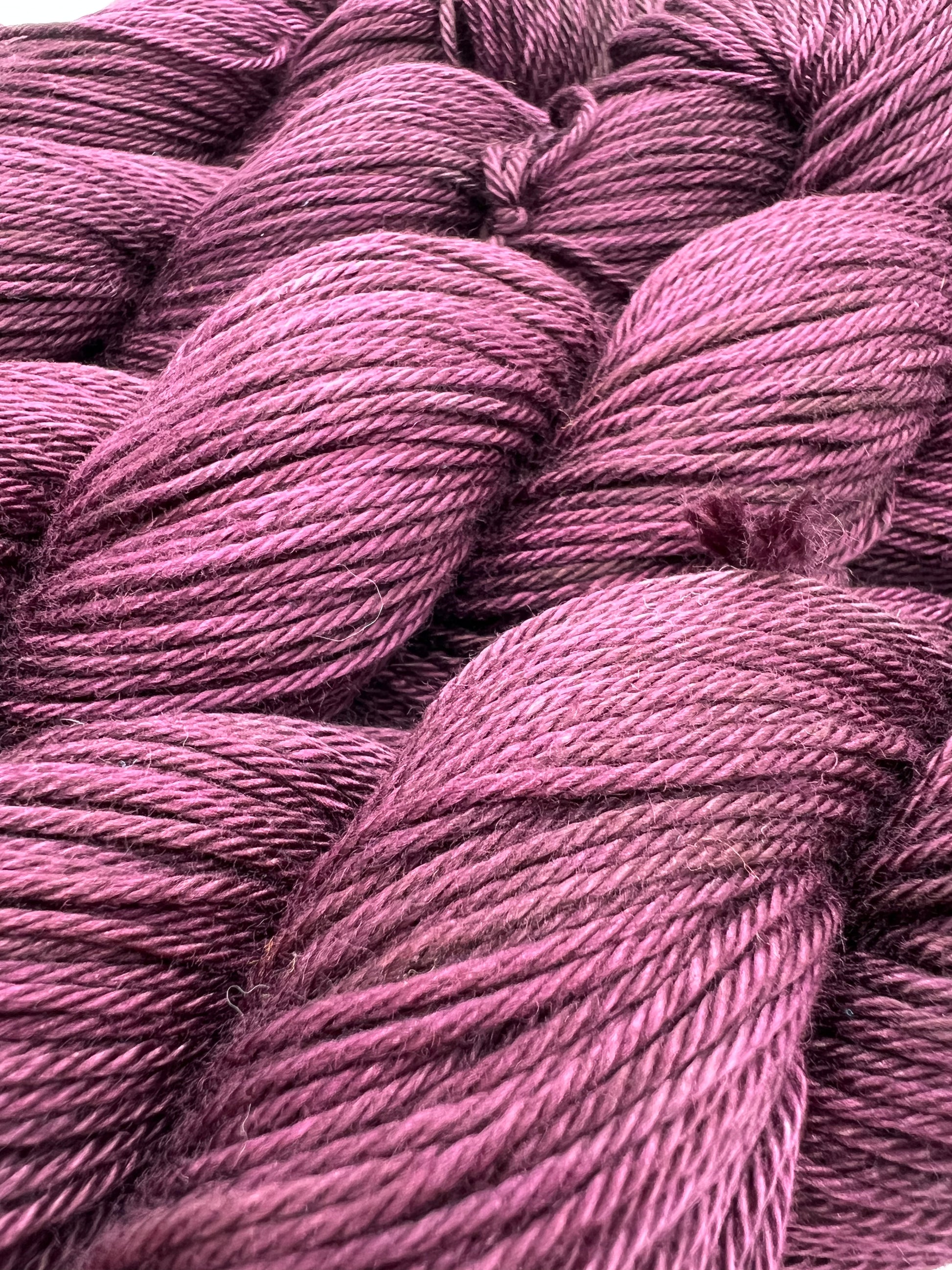 **Dyed to Order** Hand dyed cotton yarn in the colorway Aubergine. Choose from the bases listed below: