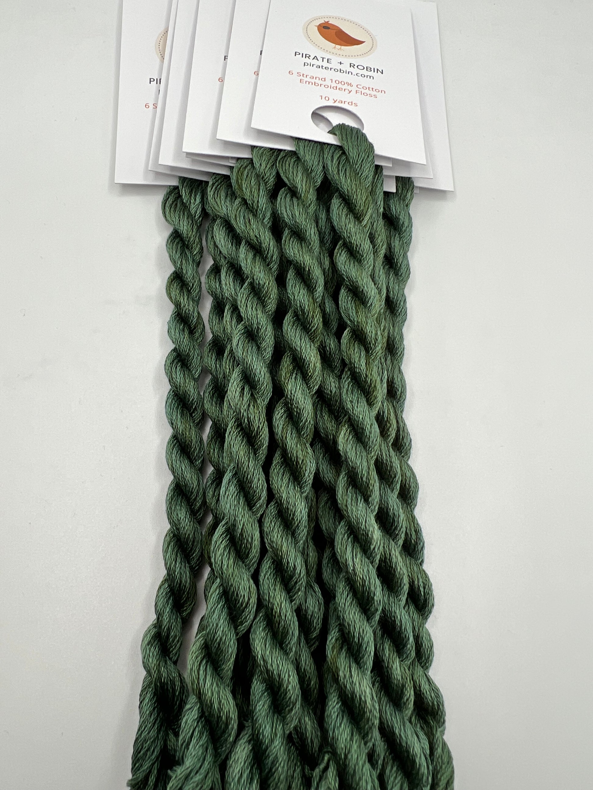 Hand dyed, 6 strand cotton embroidery floss in the colorway Willow. Available in a 10 yard and 150 yard skein.